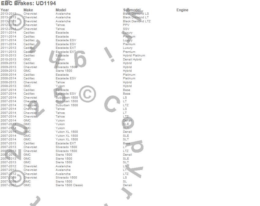 Below is an abbreviated list of applications for the Ultimax OEM Replacement Brake Pads.