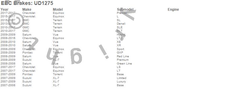 Below is an abbreviated list of applications for the Ultimax OEM Replacement Brake Pads.