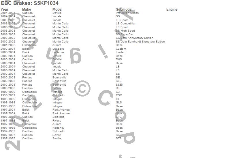 Below is an abbreviated list of applications for the S5 Kits Yellowstuff And GD Rotors.