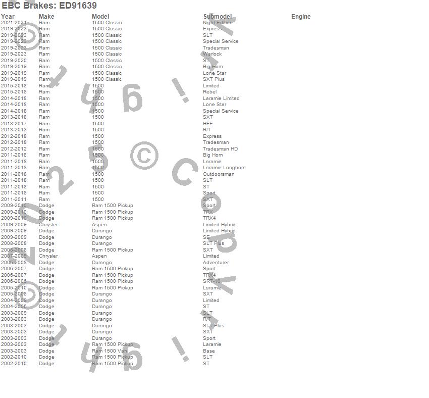 Below is an abbreviated list of applications for the Truck/SUV Extra Duty Brake Pads.