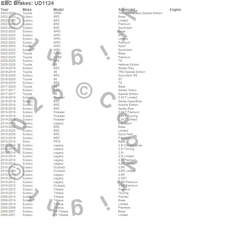 86, B9 Tribeca, BRZ, Forester, FR-S, GR86, Legacy, Outback, Tribeca, WRX, Scion, Subaru, Toyota, 2023, 2022, 2020, 2019, 2018, 2017, 2016