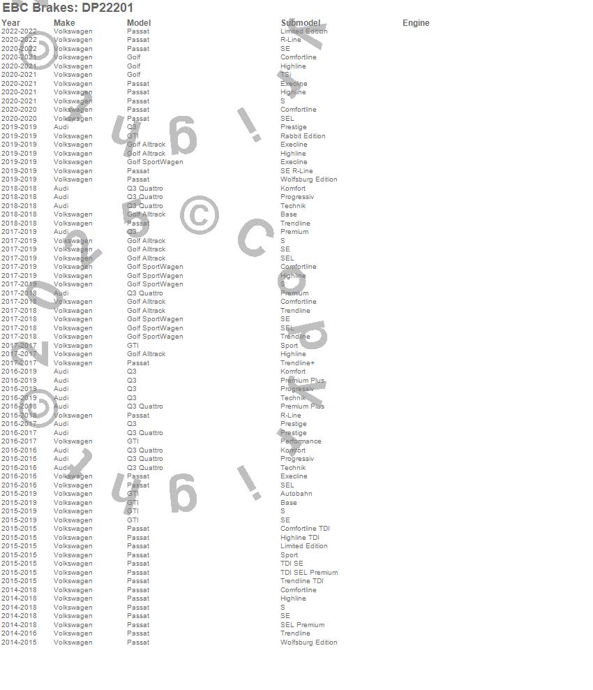 Below is an abbreviated list of applications for the Greenstuff 2000 Series Sport Brake Pads.