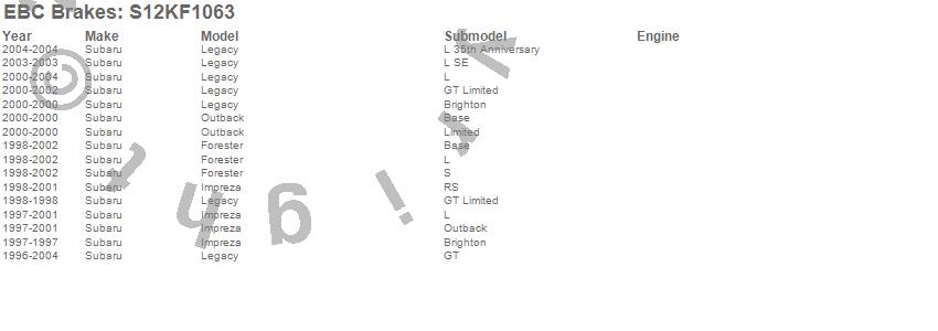 Below is an abbreviated list of applications for the S12 Kits Redstuff and RK Rotors.