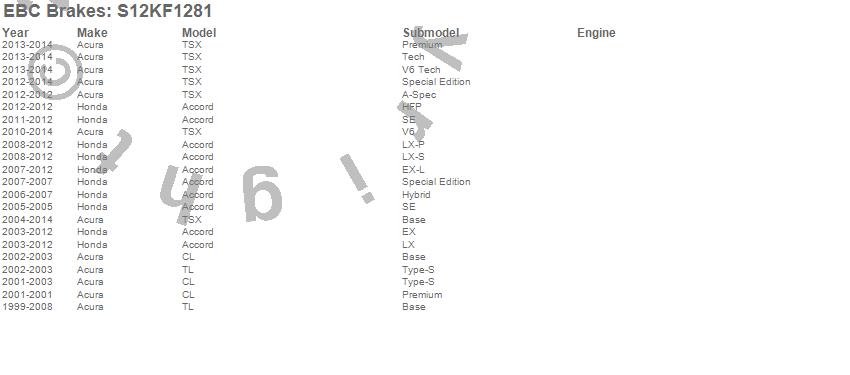 Below is an abbreviated list of applications for the S12 Kits Redstuff and RK Rotors.