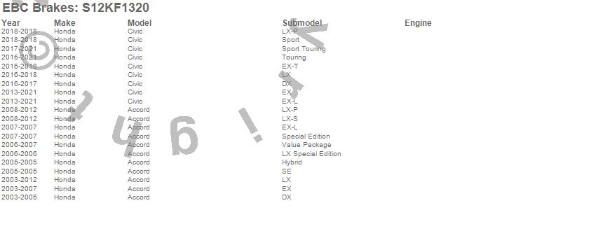 Below is an abbreviated list of applications for the S12 Kits Redstuff and RK Rotors.