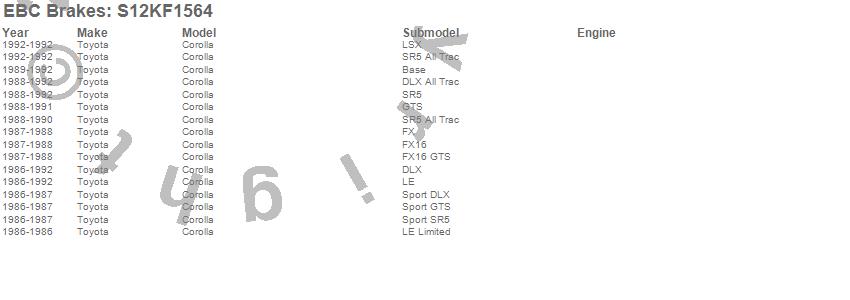 Below is an abbreviated list of applications for the S12 Kits Redstuff and RK Rotors.