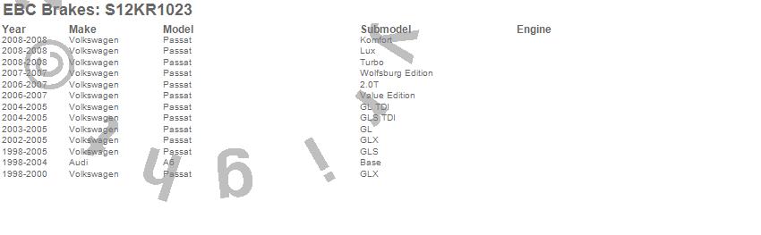 Below is an abbreviated list of applications for the S12 Kits Redstuff and RK Rotors.