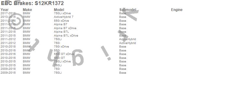 Below is an abbreviated list of applications for the S12 Kits Redstuff and RK Rotors.