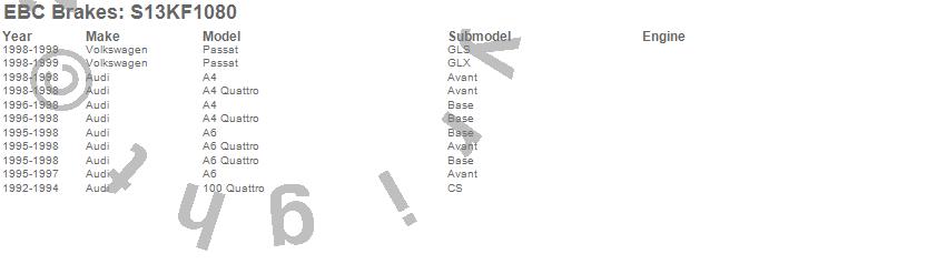 Below is an abbreviated list of applications for the S13 Kits Yellowstuff and RK Rotors.