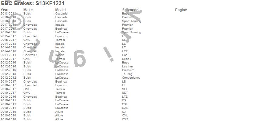 Below is an abbreviated list of applications for the S13 Kits Yellowstuff and RK Rotors.