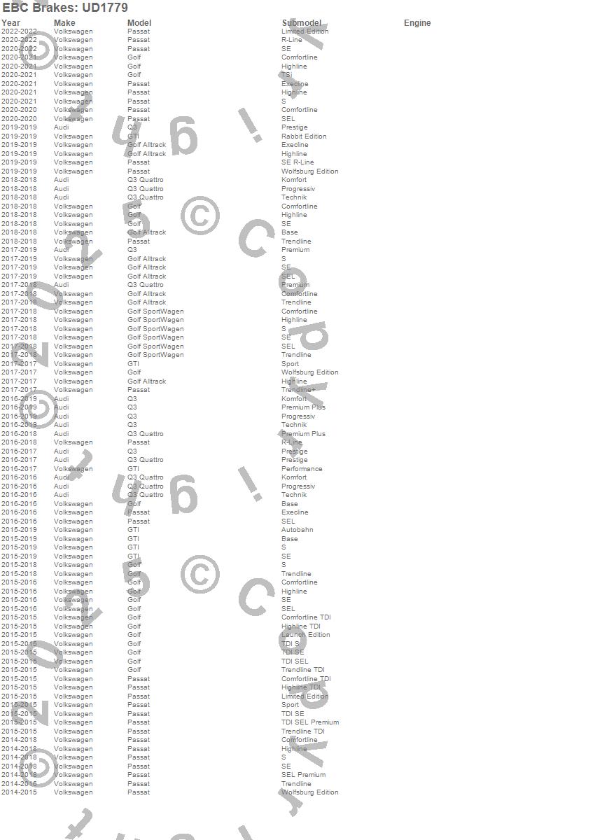 EBC Brakes UD1779 Ultimax OEM Replacement Brake Pads FMSI Pad No. D1779 - Pad Dimensions: 104.1 x 53.1 x 16.5mm