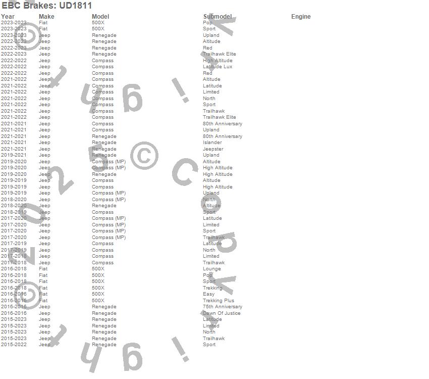 Below is an abbreviated list of applications for the Ultimax OEM Replacement Brake Pads.