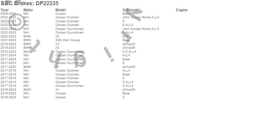 EBC Brakes - Greenstuff 2000 Series Sport Brake Pads P/N DP22235 Features: