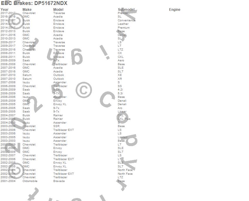 9-7X, Acadia, Ascender, Bravada, Enclave, Envoy, Envoy XL, Outlook, Rainier, SSR, Trailblazer, Trailblazer EXT, Traverse, Buick, Chevrolet, GMC, Isuzu, Oldsmobile, Saab, Saturn