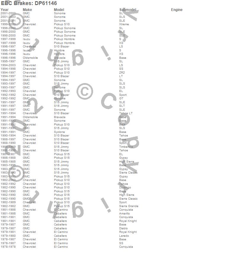 Below is an abbreviated list of applications for the 6000 Series Greenstuff Truck/SUV Brakes Disc Pads.