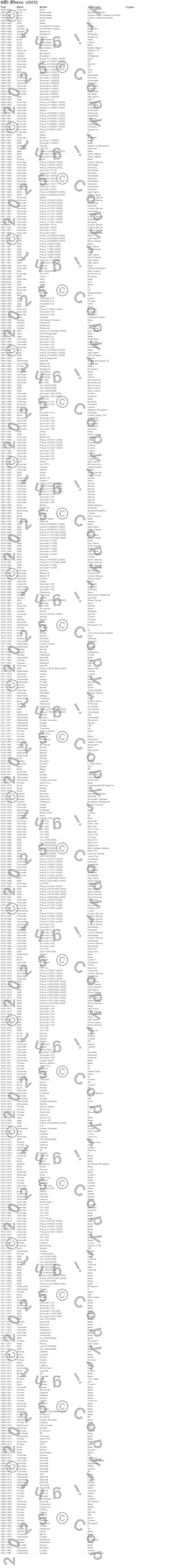 442, 98, Apollo, Astro, Bel Air, Biscayne, Blazer, Blazer K5, Bonneville, Brougham, C10 Pickup, C10 Suburban, C15 Suburban, C15/C1500 Suburban, C1500 Pickup, C1500 Suburban, C20 Pickup, C20 Suburban, C25/C2500 Pickup, C2500 Pickup