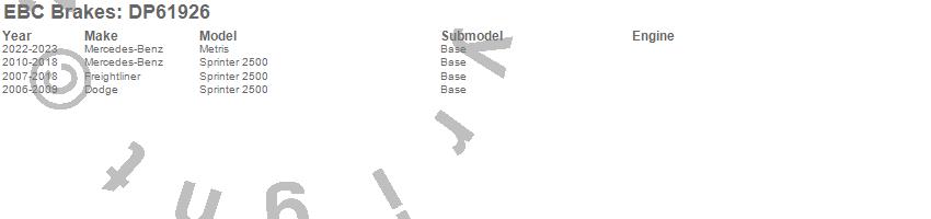 Metris, Sprinter 2500, Dodge, Freightliner, Mercedes-Benz, 2023, 2022, 2018, 2017, 2016, 2015, 2014, 2013, 2012, 2011, 2010, 2009, 2008, 2007, 2006