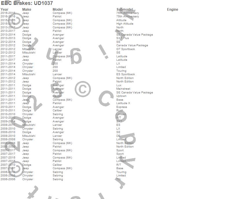 Below is an abbreviated list of applications for the Ultimax OEM Replacement Brake Pads.