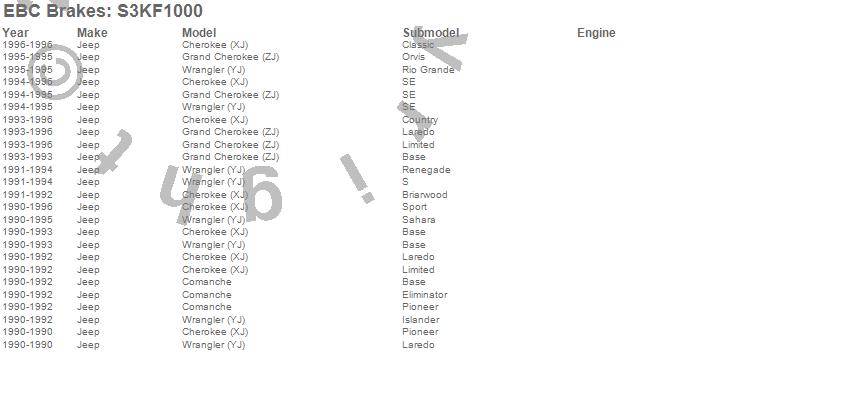 Below is an abbreviated list of applications for the S3 Kits Greenstuff 6000 and GD Rotors Truck/SUV.