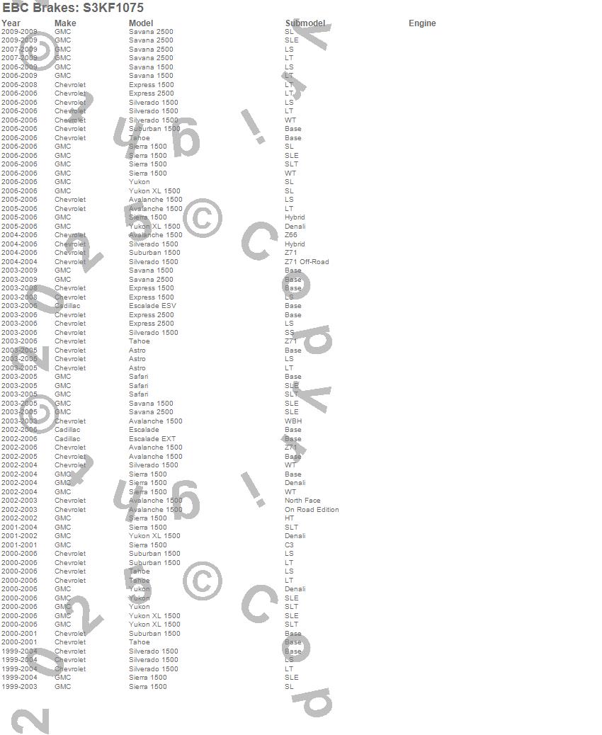 Below is an abbreviated list of applications for the S3 Kits Greenstuff 6000 and GD Rotors Truck/SUV.