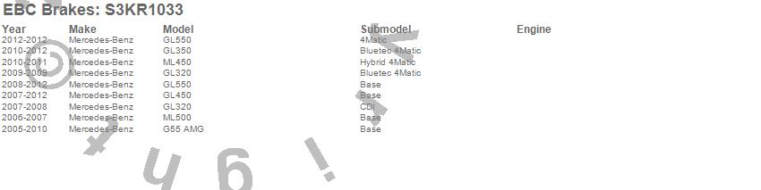 Below is an abbreviated list of applications for the S3 Kits Greenstuff 6000 and GD Rotors Truck/SUV.