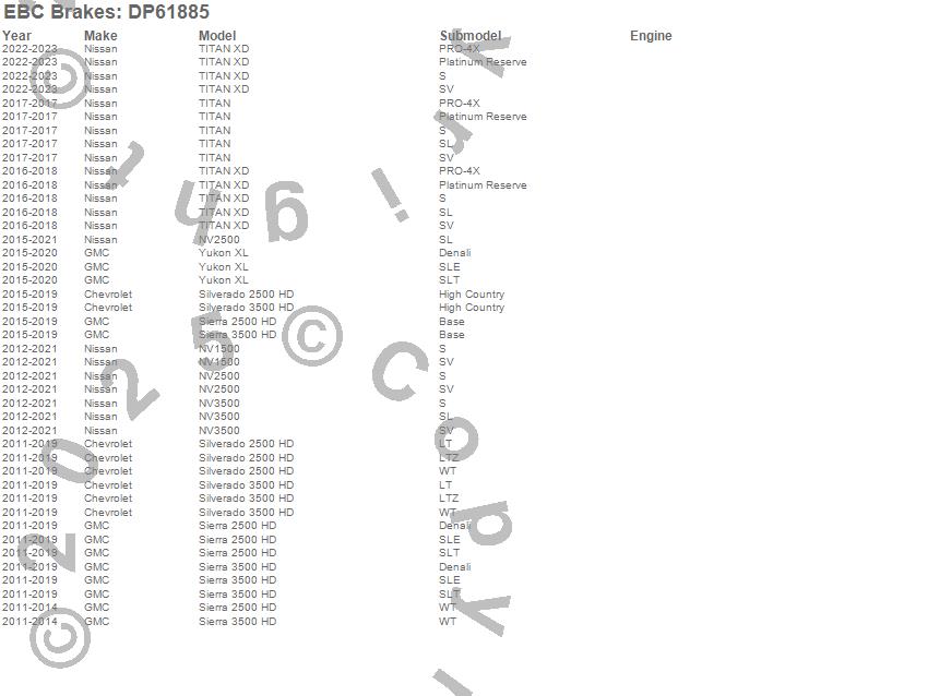 Below is an abbreviated list of applications for the 6000 Series Greenstuff Truck/SUV Brakes Disc Pads.