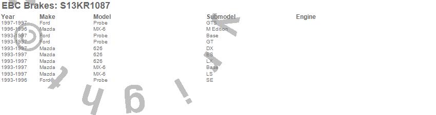 Below is an abbreviated list of applications for the S13 Kits Yellowstuff and RK Rotors.