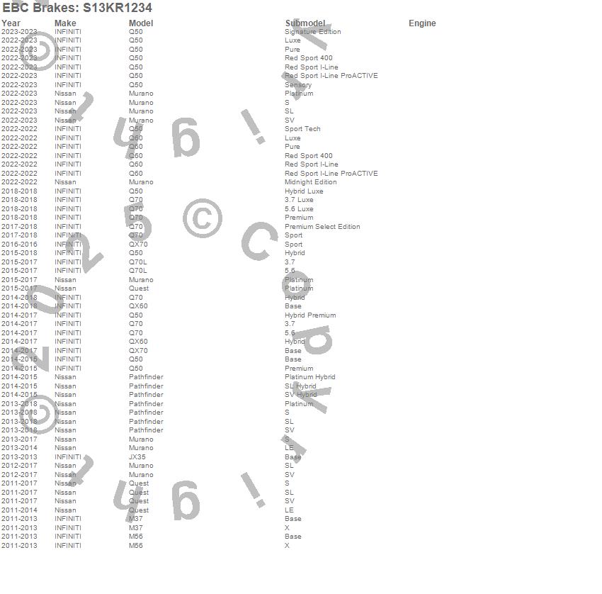 Below is an abbreviated list of applications for the S13 Kits Yellowstuff and RK Rotors.