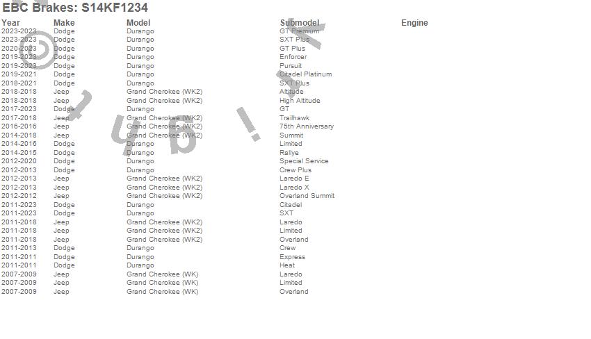 Below is an abbreviated list of applications for the S14 Kits Greenstuff and RK Rotors SUV.