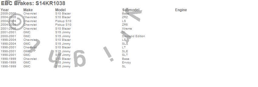 Below is an abbreviated list of applications for the S14 Kits Greenstuff and RK Rotors SUV.
