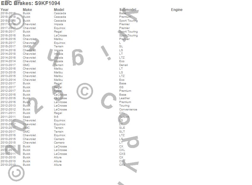 Below is an abbreviated list of applications for the S9 Kits Yellowstuff and USR Rotors.
