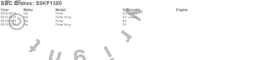 Below is an abbreviated list of applications for the S9 Kits Yellowstuff and USR Rotors.