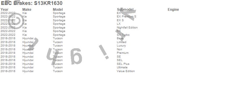 Below is an abbreviated list of applications for the S13 Kits Yellowstuff and RK Rotors.