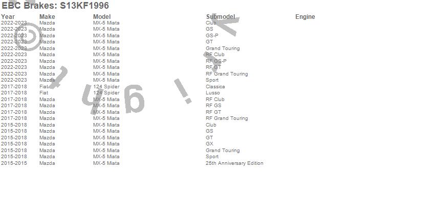 Below is an abbreviated list of applications for the S13 Kits Yellowstuff and RK Rotors.