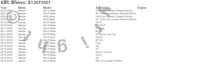 Below is an abbreviated list of applications for the S13 Kits Yellowstuff and RK Rotors.