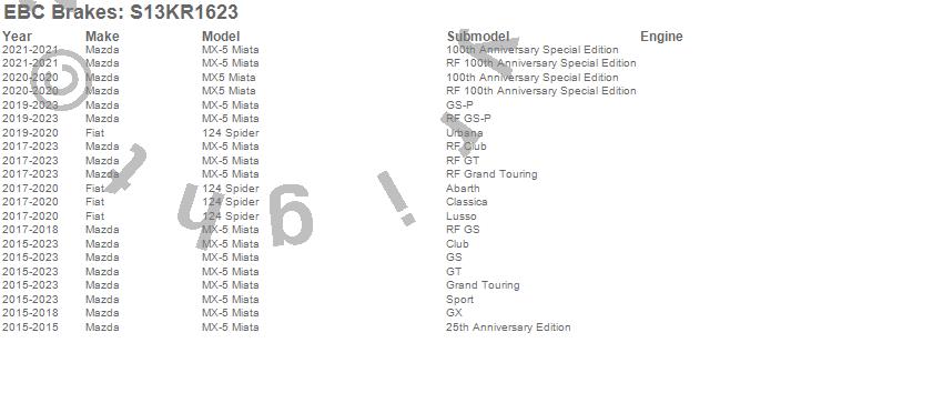 Below is an abbreviated list of applications for the S13 Kits Yellowstuff and RK Rotors.