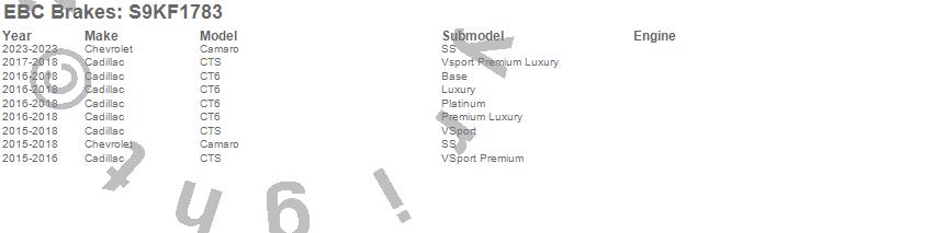 Below is an abbreviated list of applications for the S9 Kits Yellowstuff and USR Rotors.