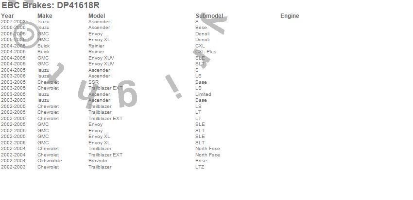 Ascender, Bravada, Envoy, Envoy XL, Envoy XUV, Rainier, SSR, Trailblazer, Trailblazer EXT, Buick, Chevrolet, GMC, Isuzu, Oldsmobile, 2008, 2007, 2006, 2005, 2004, 2003