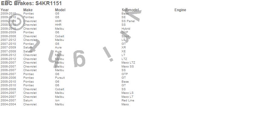 Below is an abbreviated list of applications for the S4 Kits Redstuff and USR Rotor.