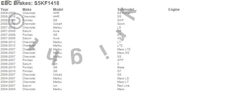 Below is an abbreviated list of applications for the S5 Kits Yellowstuff And GD Rotors.