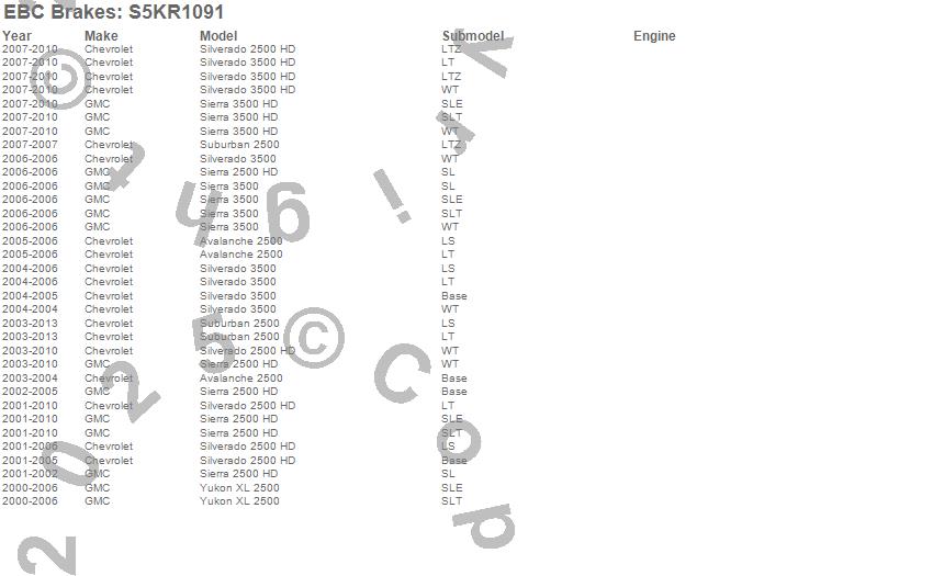 Below is an abbreviated list of applications for the S5 Kits Yellowstuff And GD Rotors.