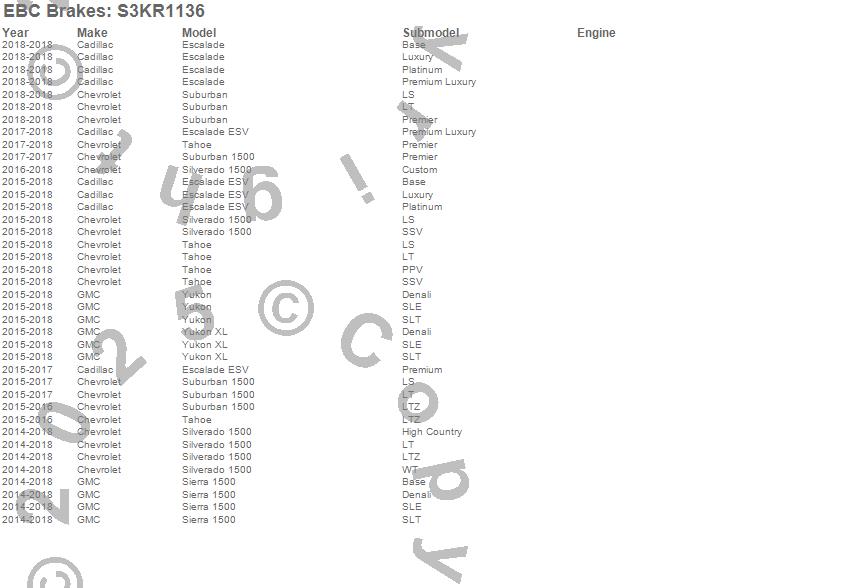 Below is an abbreviated list of applications for the S3 Kits Greenstuff 6000 and GD Rotors Truck/SUV.