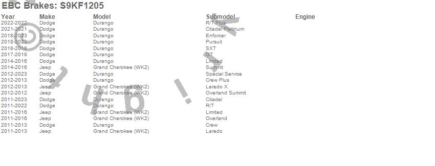 Below is an abbreviated list of applications for the S9 Kits Yellowstuff and USR Rotors.