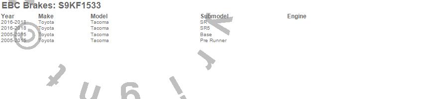 Below is an abbreviated list of applications for the S9 Kits Yellowstuff and USR Rotors.