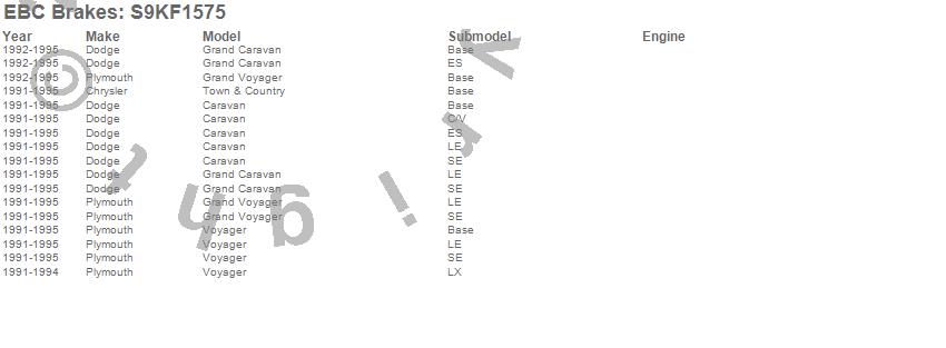 Below is an abbreviated list of applications for the S9 Kits Yellowstuff and USR Rotors.