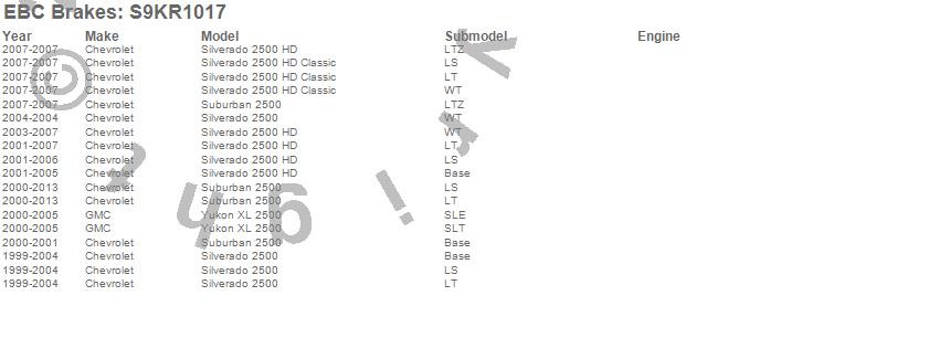 Below is an abbreviated list of applications for the S9 Kits Yellowstuff and USR Rotors.
