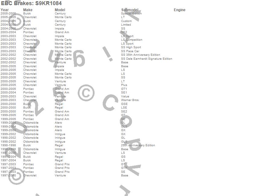Below is an abbreviated list of applications for the S9 Kits Yellowstuff and USR Rotors.