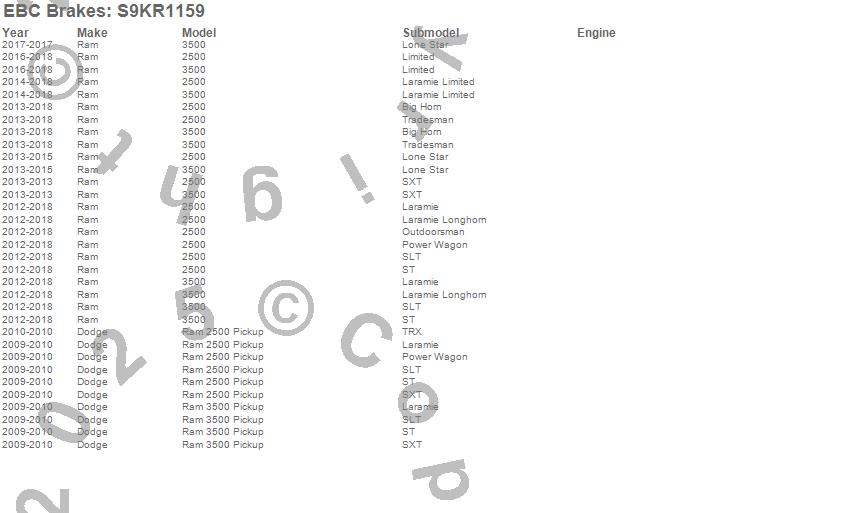 Below is an abbreviated list of applications for the S9 Kits Yellowstuff and USR Rotors.
