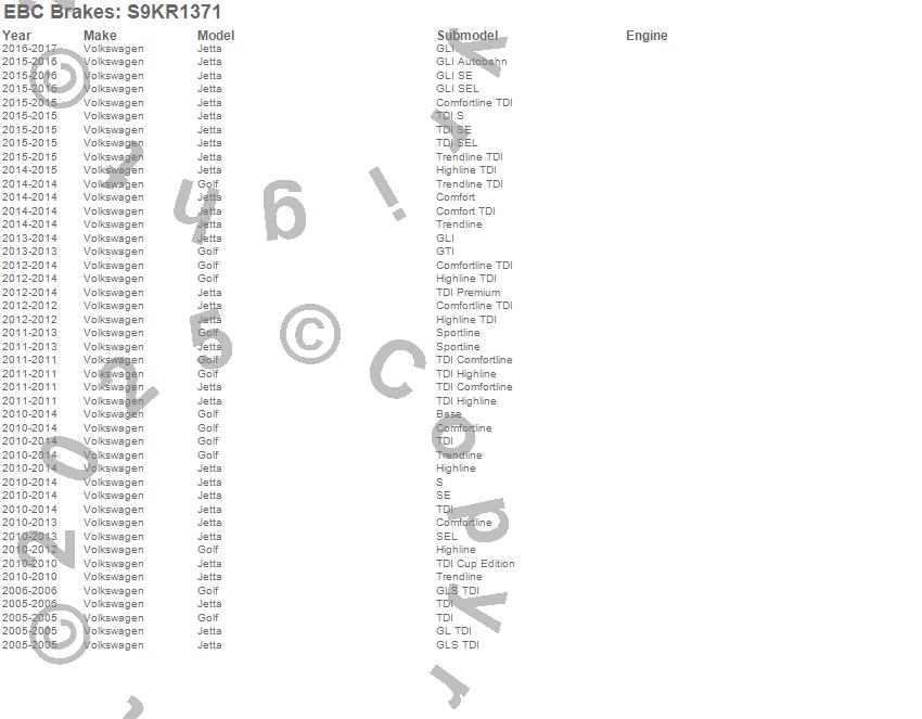 Below is an abbreviated list of applications for the S9 Kits Yellowstuff and USR Rotors.