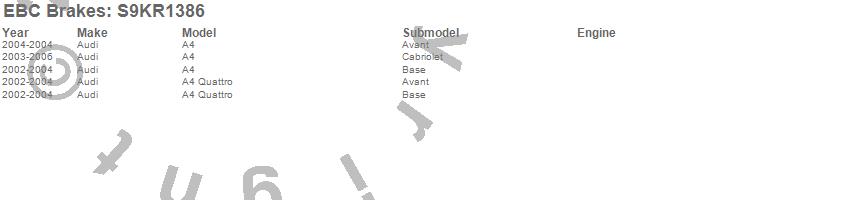 Below is an abbreviated list of applications for the S9 Kits Yellowstuff and USR Rotors.